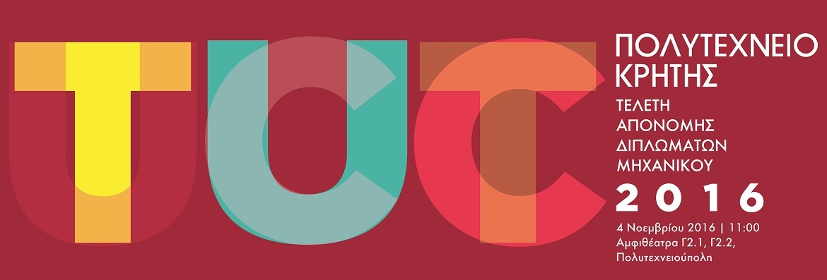 Tελετή Απονομής Μεταπτυχιακών και Διδακτορικών Διπλωμάτων Πολυτεχνείου Κρήτης Παρασκευή, 16-12-2016 και ώρα 18:30, ΚΑΜ