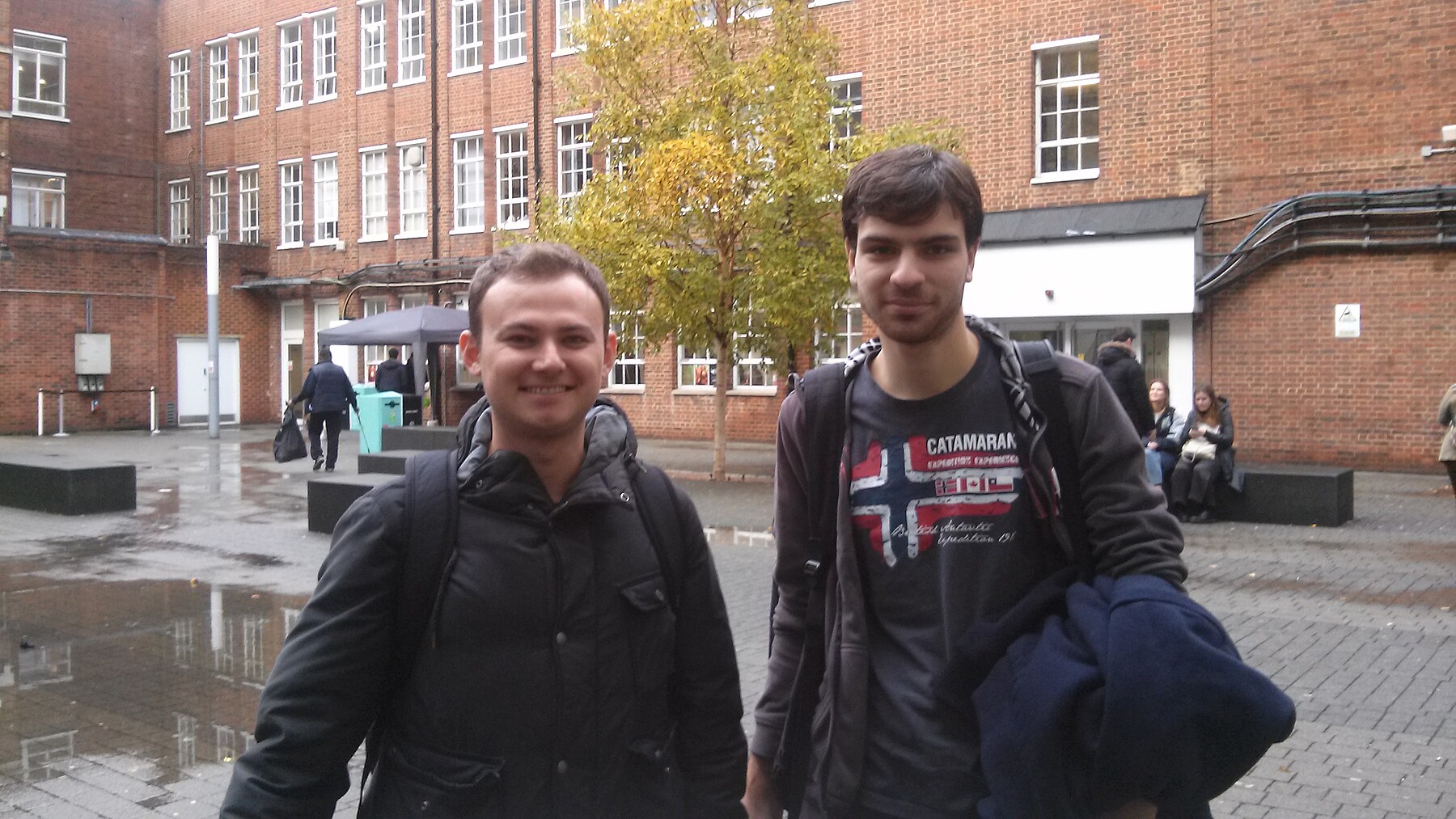 Η Caroline μου είχε κανονίσει συνάντηση με 2 Έλληνες φοιτητές Erasmus+ (έναν μεταπτυχιακό και έναν προπτυχιακό από τον Πανεπιστήμιο Πειραιώς) της Σχολής των Ηλεκτρονικών καθώς και με έναν Ισπανό. Τους 2 Έλληνες τους συνάντησα στο Foodstore όπου φάγαμε το μεσημέρι παρέα (ο Νικόλας μάλιστα κράταγε μαζί του ένα ταπεράκι με σπανακόπιτα που είχε φτιάξει μόνος του την προηγούμενη ημέρα!). Ο Σπύρος που μένει έξω από το Kingston (βρήκε φθηνότερο ενοίκιο μένοντας στο σπίτι ενός ηλικιωμένου ζευγαριού) είχε διανυκτερεύσει στο πανεπιστήμιο εκείνη την ημέρα και δη στη βιβλιοθήκη, που είναι 24ωρης λειτουργίας! Δεν διάβαζε μόνο, είδε και ταινίες στο διαδίκτυο απ’ότι μου είπε, λίγο πριν αποκοιμηθεί!