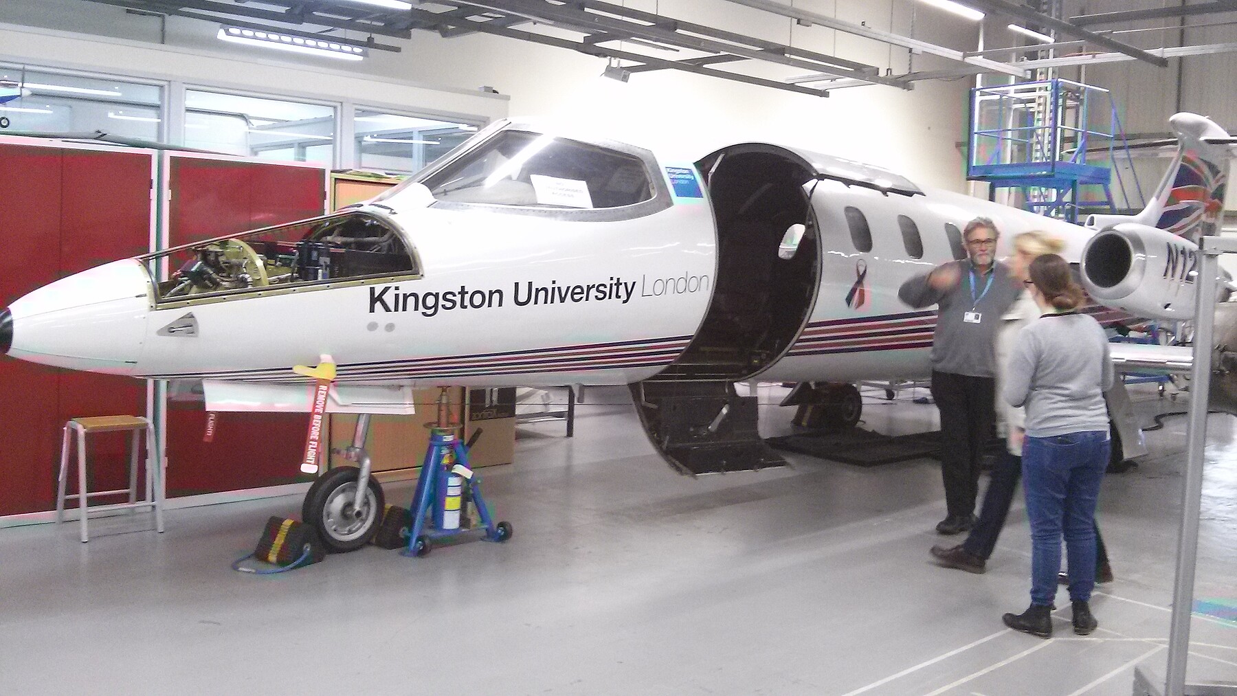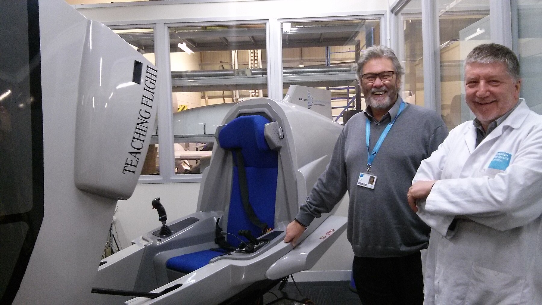 Ο Δρ. Βιτζηλαίος με ενημέρωσε διεξοδικά για την ερευνητική δραστηριότητα του Τμήματος Mechanical Engineering και στη συνέχεια, επισκεφθήκαμε τα εργαστήρια του Τμήματος αυτού αλλά και του Τμήματος Space Engineering. Είχα την ευκαιρία να μπω σε προσομοιωτή πτήσης (το προσγείωσα κανονικά!!!) αλλά και την …πολυτέλεια να μπω σ’ένα Learjet 25 (αποτέλεσμα της συνεργασίας του πανεπιστημίου με την British Airways)!