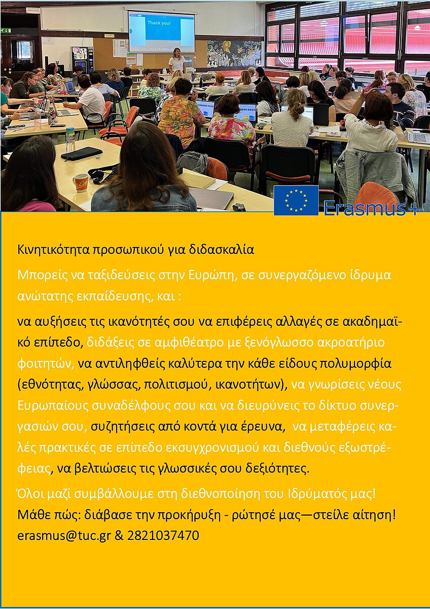 Πληροφορίες: 28210 37470 erasmus<στο>tuc.gr