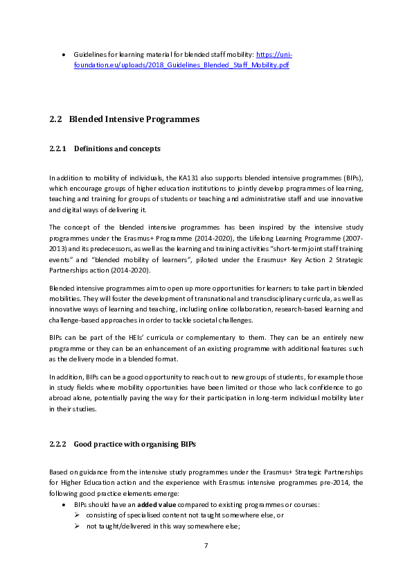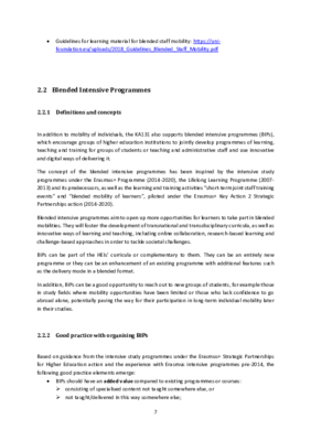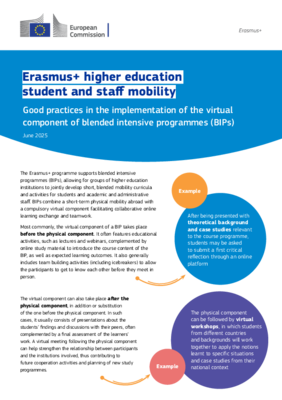 Ομάδες ανώτατων εκπαιδευτικών ιδρυμάτων θα έχουν την ευκαιρία να οργανώσουν σύντομα εντατικά προγράμματα μικτής κινητικότητας για μάθηση, διδασκαλία και κατάρτιση φοιτητών και προσωπικού. Κατά τη διάρκεια αυτών των εντατικών προγραμμάτων μικτής κινητικότητας, ομάδες φοιτητών και/ή προσωπικού ως εκπαιδευόμενοι θα πραγματοποιήσουν βραχυχρόνια δραστηριότητα κινητικότητας με φυσική παρουσία στο εξωτερικό σε συνδυασμό με μια υποχρεωτική εικονική συνιστώσα που θα διευκολύνει τη συνεργατική διαδικτυακή μάθηση και την ομαδική εργασία. Η εικονική συνιστώσα θα πρέπει να φέρνει κοντά τους εκπαιδευόμενους ώστε να μπορούν να εργάζονται μέσω διαδικτύου συλλογικά και ταυτόχρονα σε συγκεκριμένες εργασίες που ενσωματώνονται στο εντατικό πρόγραμμα μικτής κινητικότητας και προσμετρώνται στα συνολικά μαθησιακά αποτελέσματα.