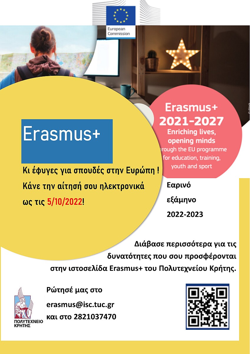 Ενημερωτική συνάντηση αύριο Πέμπτη και ώρα 10 το πρωί στην αίθουσα Β1.001 για να λύσουμε όλες τις απορίες σας σχετικά με την προκήρυξη για σπουδές στο εαρινό εξάμηνο 2022-2023, τις επιλογές σας, τις υποχρεώσεις σας, την όλη διαδικασία.