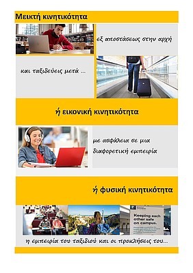 - μεικτή κινητικότητα: έναρξη των σπουδών εξ αποστάσεως από Ελλάδα και συνέχισή τους με φυσική παρουσία στο Ίδρυμα Υποδοχής στο εξωτερικό όταν οι υγειονομικές συνθήκες το επιτρέπουν (συνιστάται),