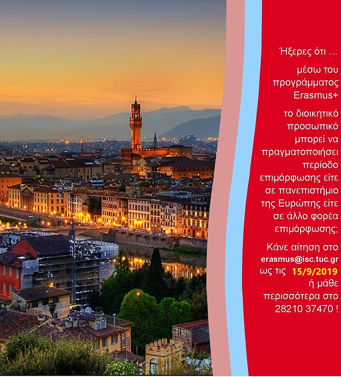 Πληροφορίες: 28210 37470 erasmus<στο>isc.tuc.gr