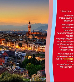 - Κινητικότητα διδακτικού προσωπικού για διδασκαλία: ακαδημαϊκό έτος 2018-2019.