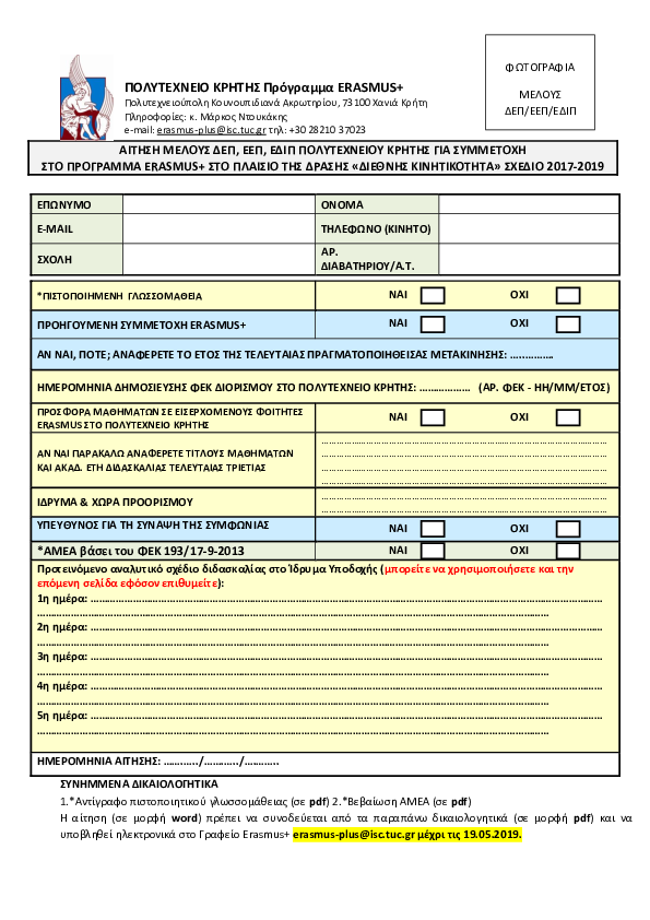 ΠΡΟΓΡΑΜΜΑ ERASMUS+ ΚΑ107 ΔΙΕΘΝΗΣ ΚΙΝΗΤΙΚΟΤΗΤΑ ΓΙΑ ΔΙΔΑΣΚΑΛΙΑ & ΕΠΙΜΟΡΦΩΣΗ (Σχέδιο 2017-2019)