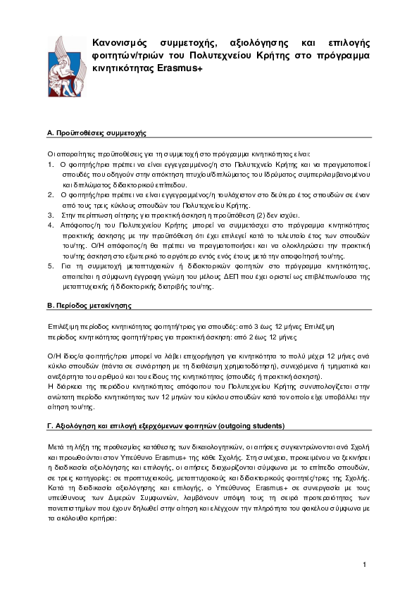 Πρόγραμμα Erasmus+ Πολυτεχνείου Κρήτης