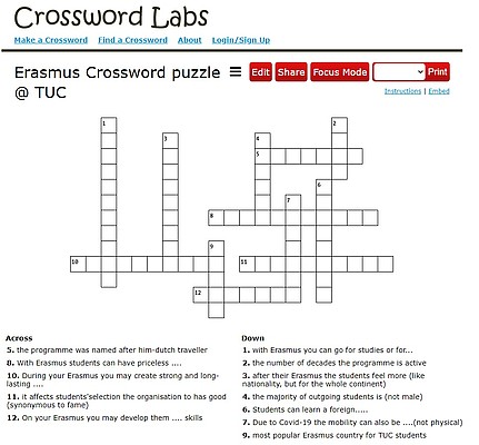 Στο πλαίσιο της δράσης "Erasmus Days 2020" το Γραφείο Erasmus του Πολυτεχνείου Κρήτης δημιούργησε ένα κρυπτόλεξο και ένα σταυρόλεξο, και καλεί τους φοιτητές να δοκιμάσουν τις γνώσεις τους για το Πρόγραμμα Erasmus+ ...παίζοντας!