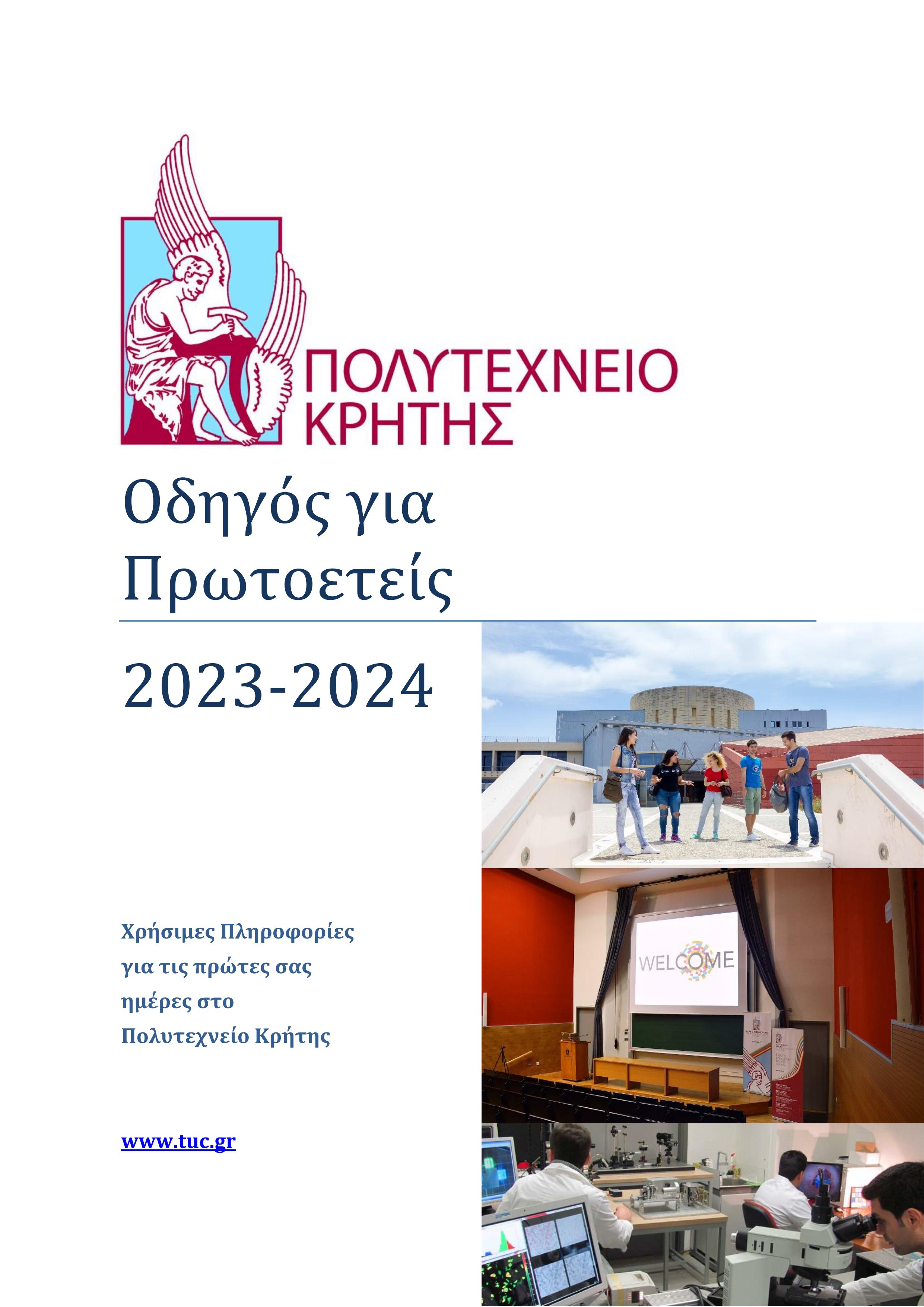 Στις επόμενες σελίδες θα βρείτε χρήσιμες πληροφορίες που θα σας βοηθήσουν να αποκτήσετε μια πρώτη εικόνα των σπουδών στις διάφορες Σχολές και σημαντικές πληροφορίες που θα σας βοηθήσουν να κάνετε τα πρώτα σας βήματα στο Πολυτεχνείο Κρήτης ως πρωτοετής φοιτητής ή φοιτήτρια!