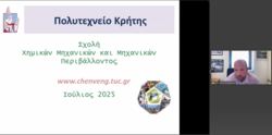 Παρουσίαση Σχολής Χημικών Μηχανικών και Μηχανικών Περιβάλλοντος από τον Αναπληρωτή Κοσμήτορα Καθ. Απόστολο Βουλγαράκη