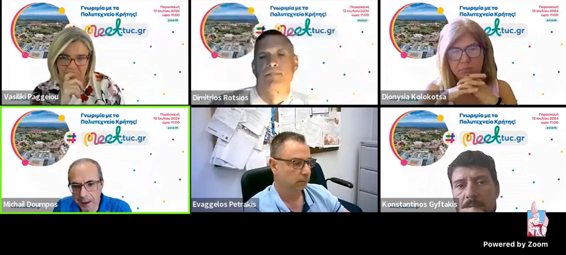 Πραγματοποιήθηκε και φέτος στις 12.07.2024 η Διαδικτυακή Εκδήλωση «Γνωριμία με το Πολυτεχνείο Κρήτης», με συντονιστή το Γραφείο Διασύνδεσης και Σταδιοδρομίας σε συνεργασία με τις Σχολές του Πολυτεχνείου!