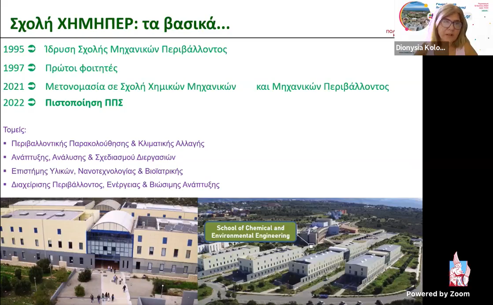 12:15-12:30 ► Παρουσίαση Σχολής ΧΗΜΗΠΕΡ από την Κοσμήτορα Καθ. Διονυσία Κολοκοτσά