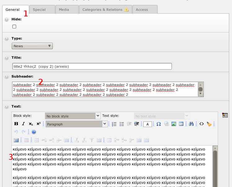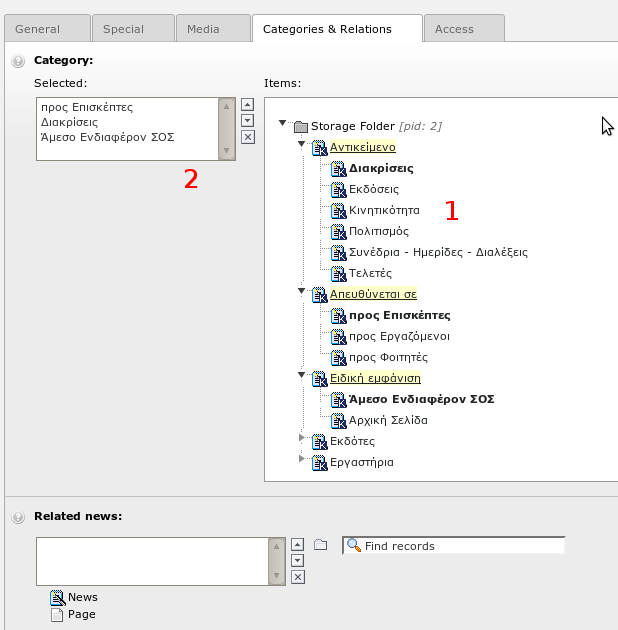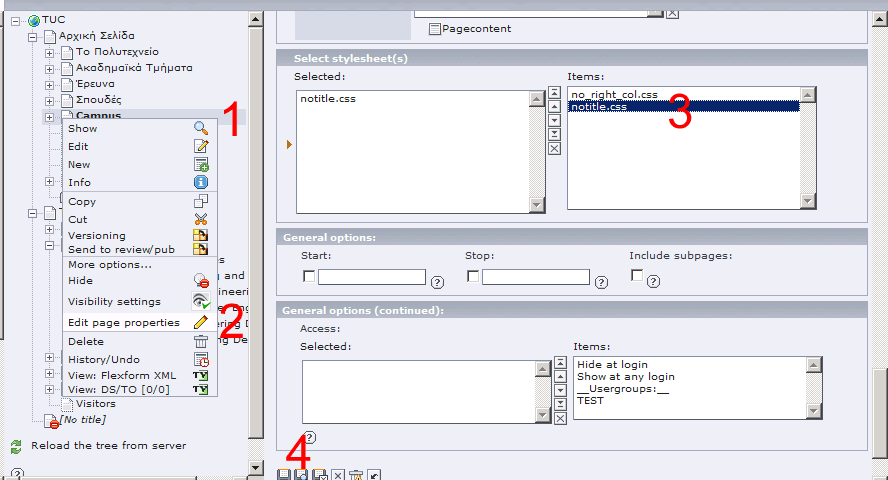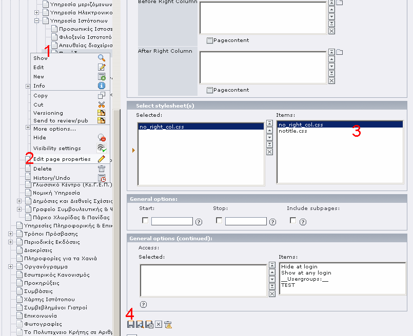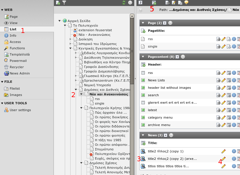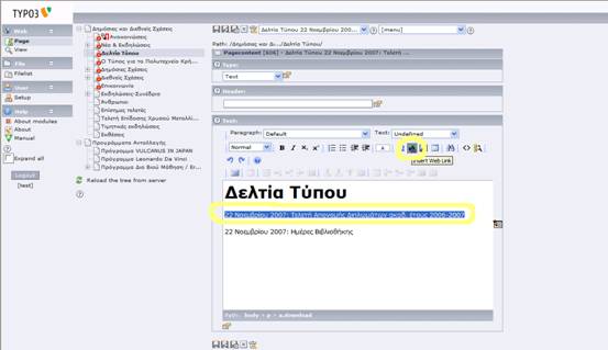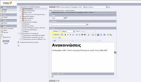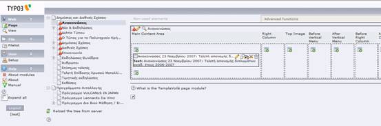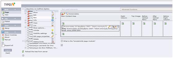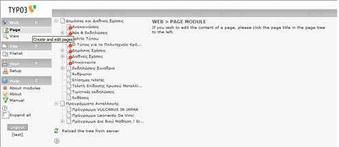 Παρακάτω δίνονται βασικές οδηγίες χρήσης της πλατφόρμας Typo3