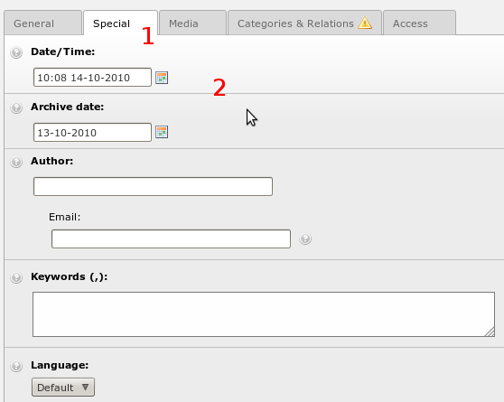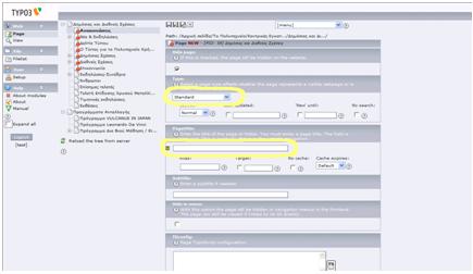 Στο νέο παράθυρο που εμφανίζεται επιλέγουμε τον τύπο της σελίδας στο πεδίο Type (συνήθως το Standard το οποίο είναι προεπιλεγμένο), ενώ στο πεδίο Pagetitle γράφουμε τον τίτλο της σελίδας ο οποίος θα εμφανίζεται και στο μενού. Φροντίζουμε οι τίτλοι να είναι σύντομοι και στο πνεύμα των υπολοίπων σχετικών σελίδων.