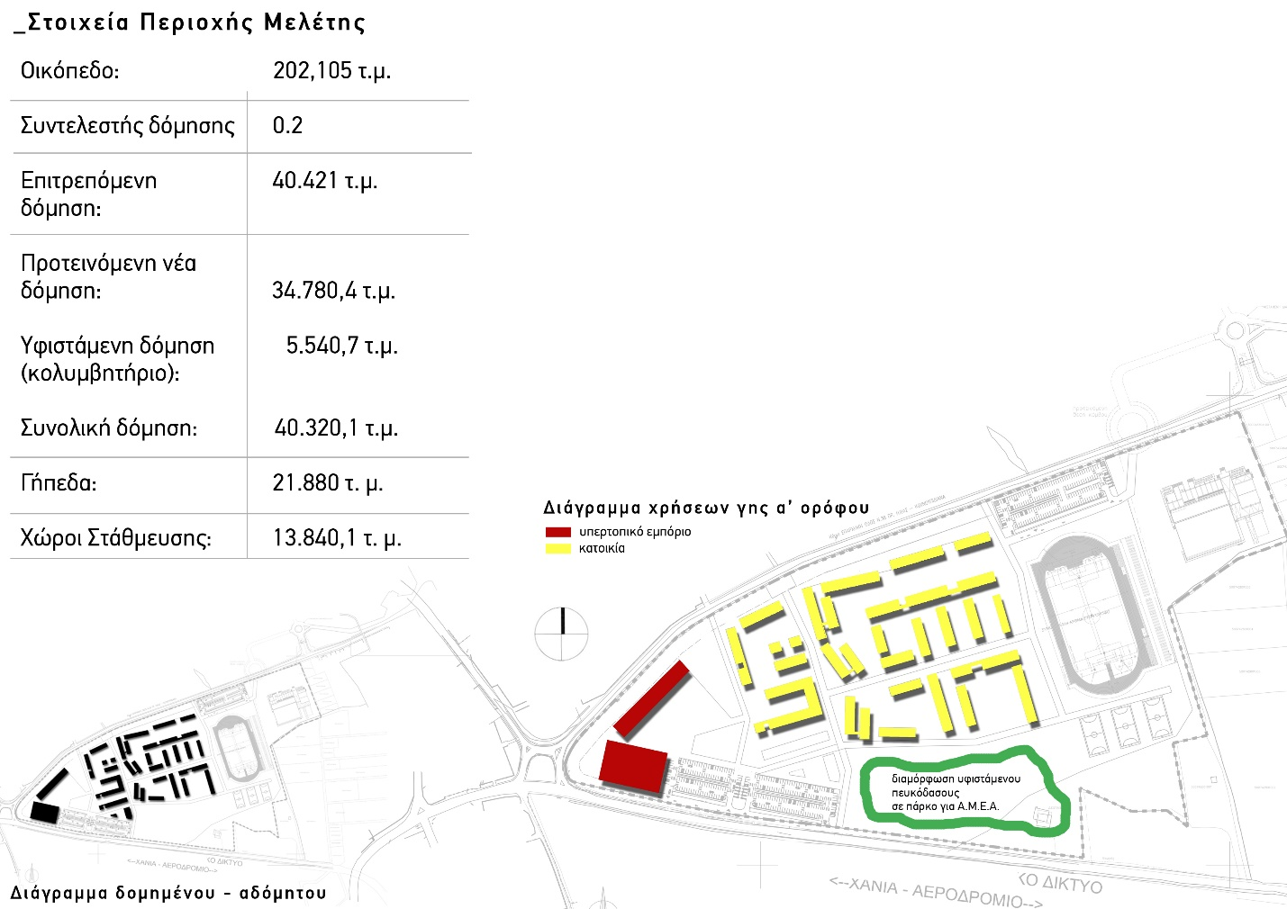 - Παράλληλα με το ζήτημα του κολυμβητηρίου, μία σειρά από αθλητικούς φορείς των Χανίων ζήτησε τη συνδρομή του Πολυτεχνείου Κρήτης στην παραχώρηση χώρου για την κατασκευή ενός σταδίου ή κάποιων άλλων, μικρότερης κλίμακας, εγκαταστάσεων. Μεταξύ αυτών και ο Γ. Σ. Ελευθέριος Βενιζέλος, πρωταθλητής Ελλάδας στον στίβο τα τελευταία έτη. Ο Πρύτανης Καθ. Ε. Διαμαντόπουλος ανέθεσε σε μια ομάδα καθηγητών της Σχολής Αρχιτεκτόνων Μηχανικών την πολεοδόμηση του μεγάλου οικοπέδου ιδιοκτησίας του Πολυτεχνείου Κρήτης, απέναντι από την Πολυτεχνειούπολη (σε μία γωνιά του οποίου έχει κατασκευαστεί το κολυμβητήριο), η οποία θα συμπεριλαμβάνει το κολυμβητήριο, ανοικτό στάδιο στίβου, αθλητικές εστίες, μικρότερες αθλητικές εγκαταστάσεις (π.χ. γήπεδα τέννις, βόλλεϋ, κλπ), αλλά και 700 κατοικίες, πάρκο για παιδιά ΑΜΕΑ, εμπορικό κέντρο και αντίστοιχο χώρο στάθμευσης. Στόχος αυτής της πολεοδόμησης είναι η ένταξη σε σχέδιο Σύμπραξης Δημόσιου-Ιδιωτικού Τομέα (ΣΔΙΤ), ώστε να υπάρξει διαθεσιμότητα κατοικιών χαμηλού ενοικίου σε φοιτητές του Πολυτεχνείου (σε όσους δεν είναι δικαιούχοι δωρεάν στέγασης στη Φοιτητική Εστία) και παράλληλα να διερευνηθεί, αν μπορεί να ενταχθεί στη ΣΔΙΤ τουλάχιστον το κολυμβητήριο. Ας τονιστεί επίσης ότι προβλέπεται αλλαγή στην είσοδο του οικοπέδου όπου βρίσκεται το κολυμβητήριο, εξ αιτίας της σχεδιαζόμενης κατασκευής τριών κυκλικών κόμβων (η σχετική μελέτη έχει εκπονηθεί από τον Οργανισμό Ανάπτυξης Κρήτης) στον κεντρικό δρόμο που το χωρίζει με την Πολυτεχνειούπολη. Το σχέδιο με την πολεοδόμηση του μεγάλου οικοπέδου φαίνονται στο επισυναπτόμενο Παράρτημα.