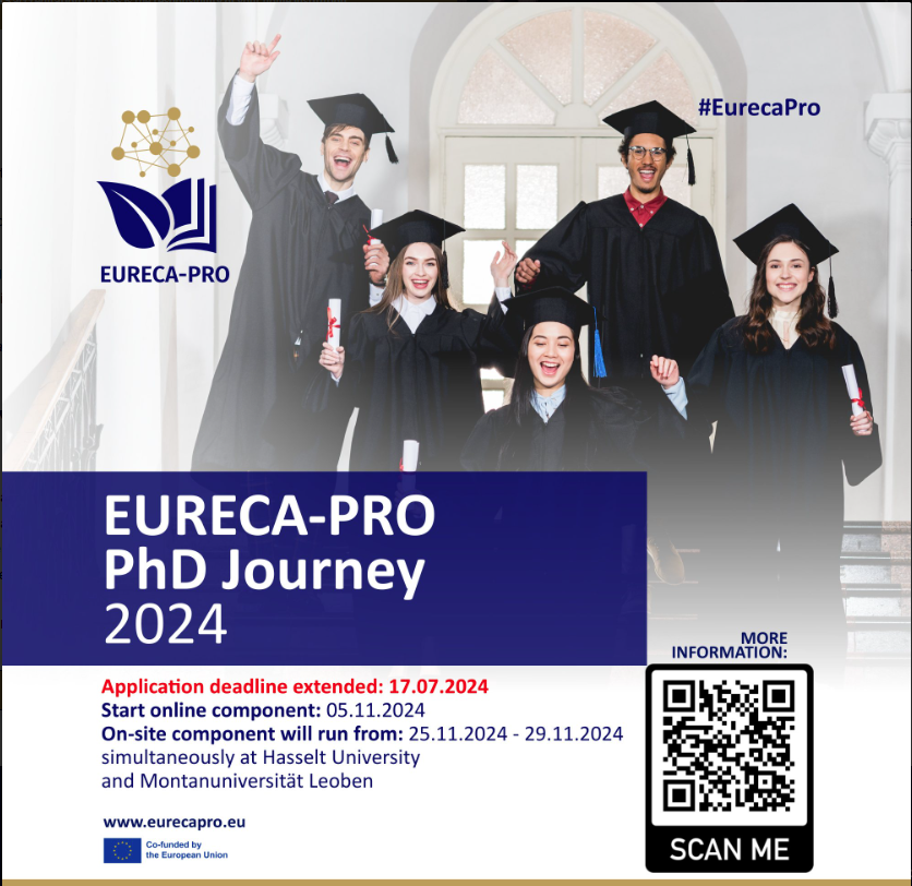 Οι επιλεγμένοι υποψήφιοι διδάκτορες θα έχουν τη μοναδική ευκαιρία να ενισχύσουν τις δεξιότητές τους και να διευρύνουν τα ερευνητικά τους δίκτυα μέσω της συνεργασίας με ερευνητές από το Hasselt University (Βέλγιο) και το Montanuniversität Leoben (Αυστρία). Το διά ζώσης πρόγραμμα θα πραγματοποιηθεί ταυτόχρονα στα δύο αυτά πανεπιστήμια-εταίρους του EURECA-PRO, συγκεντρώνοντας διδακτορικούς φοιτητές από τα υπόλοιπα πανεπιστήμια-εταίρους (έως 5 από κάθε ένα) για μια γεμάτη εβδομάδα δραστηριοτήτων προσανατολισμένων στην έρευνα. Μην χάσετε αυτήν την ξεχωριστή ευκαιρία να εμπλουτίσετε το ακαδημαϊκό σας ταξίδι και να συνδεθείτε με συναδέλφους σας από όλη την Ευρώπη.