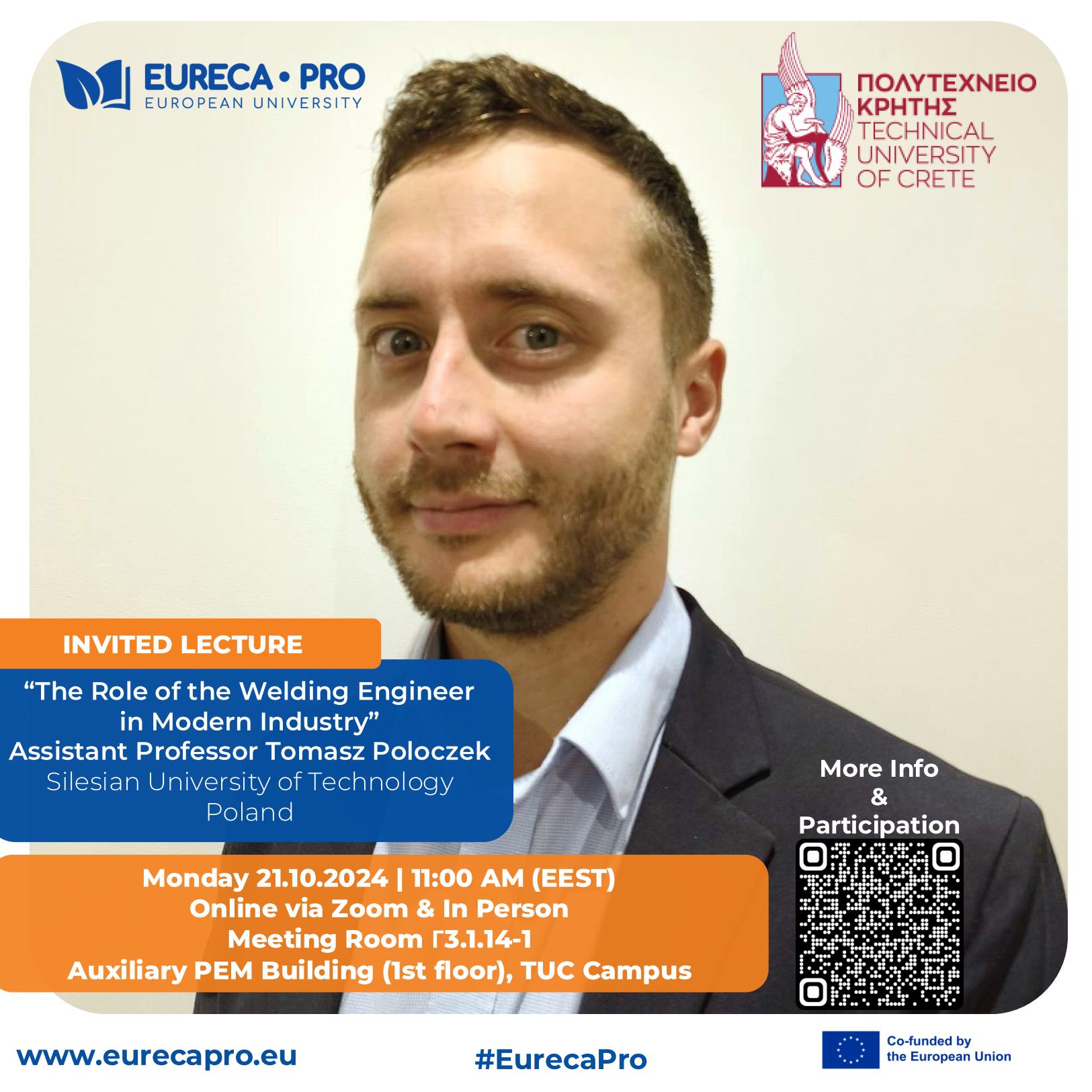 Το Πολυτεχνείο Κρήτης, μέλος του Ευρωπαϊκού Πανεπιστημίου European University on Responsible Consumption and Production (EURECA-PRO), διοργανώνει μια σειρά ανοιχτών επιστημονικών διαλέξεων στο πλαίσιο της κινητικότητας καθηγητών μεταξύ των συνεργαζόμενων πανεπιστημίων. Η επόμενη διάλεξη αυτής της σειράς έχει τίτλο: