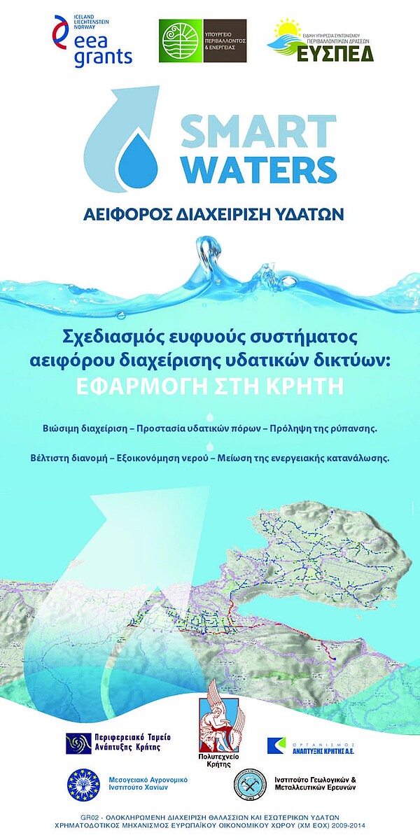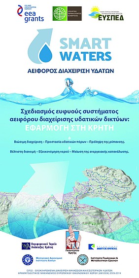 Η εφαρμογή του SmartWater, ενός ευφυούς συστήματος αειφόρου διαχείρισης υδατικών δικτύων, στα δίκτυα υδάτων του Οργανισμού Ανάπτυξης Κρήτης στην περιοχή των Χανίων, αποτέλεσε το επίκεντρο ημερίδας που διοργανώθηκε στην αίθουσα του ΤΕΕ / Τμήμα Δυτικής Κρήτης, στις 21 Οκτωβρίου 2016. Το Εργαστήριο Ελέγχου Βιομηχανικών και Ενεργειακών Συστημάτων του Πολυτεχνείου Κρήτης είναι ο επικεφαλής εταίρος ενώ συμμετέχουν επίσης ο Οργανισμός Ανάπτυξης Κρήτης (ΟΑΚ), το Μεσογειακό Αγρονομικό Ινστιτούτο Χανίων (ΜΑΙΧ), το Ινστιτούτο Γεωτεχνικών και Μεταλλευτικών Ερευνών (ΙΓΜΕ) και το Περιφερειακό Ταμείο Ανάπτυξης Κρήτης (ΠΤΑΚ) -Ενεργειακό Κέντρο Περιφέρειας Κρήτης.