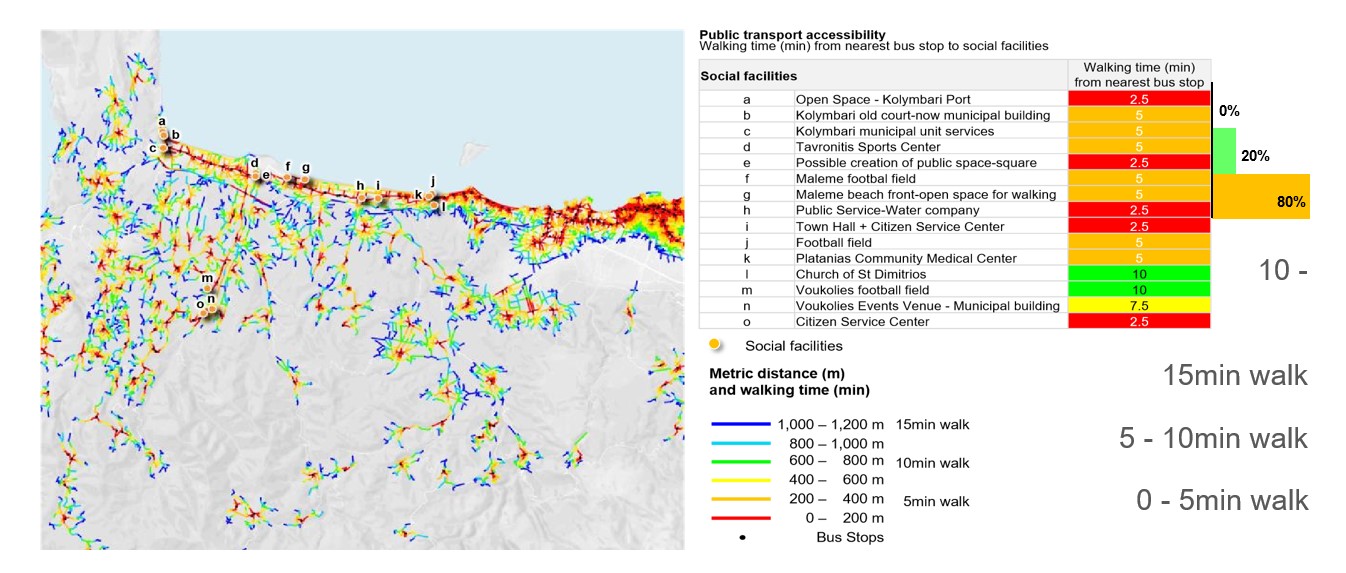- Πόσοι κάτοικοι ζουν σε απόσταση 15 λεπτών με τα πόδια από ένα σχολείο, ένα κέντρο υγείας ή άλλες κοινωνικές υποδομές;