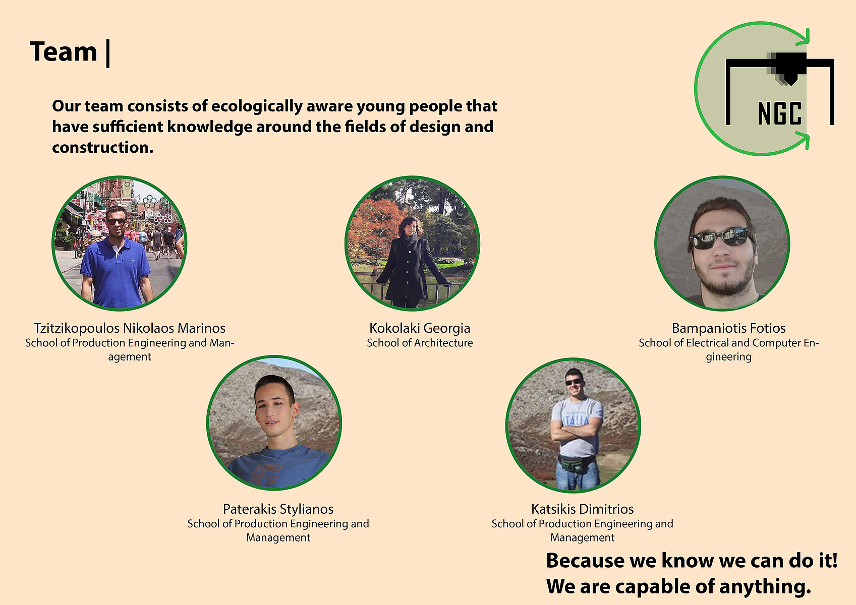 Σύνθεση της ομάδας NGC-New Generation of Construction, με μέντορα τον Κυριαζή Μάρκο (Founder & CEO PTA REHAB Ecorthotics):