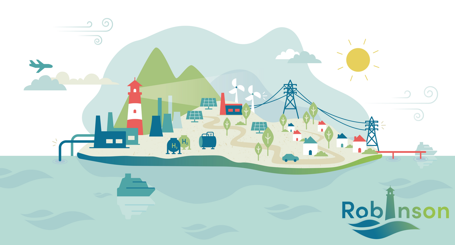 Κύριος στόχος του ROBINSON είναι η ανάπτυξη ενός ολοκληρωμένου ενεργειακού συστήματος προσαρμοσμένο σε νησιά με βιομηχανικές δραστηριότητες, με τον συνδυασμό τοπικά διαθέσιμων πηγών ενέργειας καινοτόμων τεχνολογιών αποθήκευσης, συμβάλλοντας στην αποανθρακοποίηση των ευρωπαϊκών νησιών με τη σταδιακή κατάργηση των ορυκτών καυσίμων. Με τη βοήθεια ενός Συστήματος Διαχείρισης Ενέργειας (EMS) βασισμένο σε αρχές Ψηφιακών Διδύμων (Digital Twins), το ROBINSON συνδυάζει υπάρχουσες και νέες τεχνολογίες, όπως η συμπαραγωγή θερμότητας-ισχύος μέσω αεριοστρόβιλου, η αναερόβια χώνεψη βιομηχανικών αποβλήτων υποστηριζόμενη από βιοηλεκτροχημικά συστήματα, η αεριοποίηση βιομάζας αλλά και πρακτικές κυκλικής οικονομίας όπως η βιομηχανική συμβίωση μέσω της επαναχρησιμοποίησης θερμότητας, νερού και οξυγόνου. Διερευνάται, επίσης, η αξιοποίηση της περίσσειας ενέργειας από ανανεώσιμες πηγές (ΑΠΕ) και του παραγόμενου από αυτές πράσινου υδρογόνου, σε εφαρμογές όπως ο εξηλεκτρισμός των εργασιών φόρτωσης/εκφόρτωσης πλοίων και των οδικών μεταφορών.