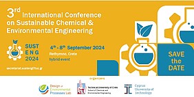 Το 3ο Διεθνές Συνέδριο Βιώσιμης Χημικής Μηχανικής και Μηχανικής Περιβάλλοντος (SUSTENG 2024) θα πραγματοποιηθεί στο Ρέθυμνο μεταξύ 4 και 8 Σεπτεμβρίου 2024, τόσο με φυσική, όσο και με εικονική, παρουσία.