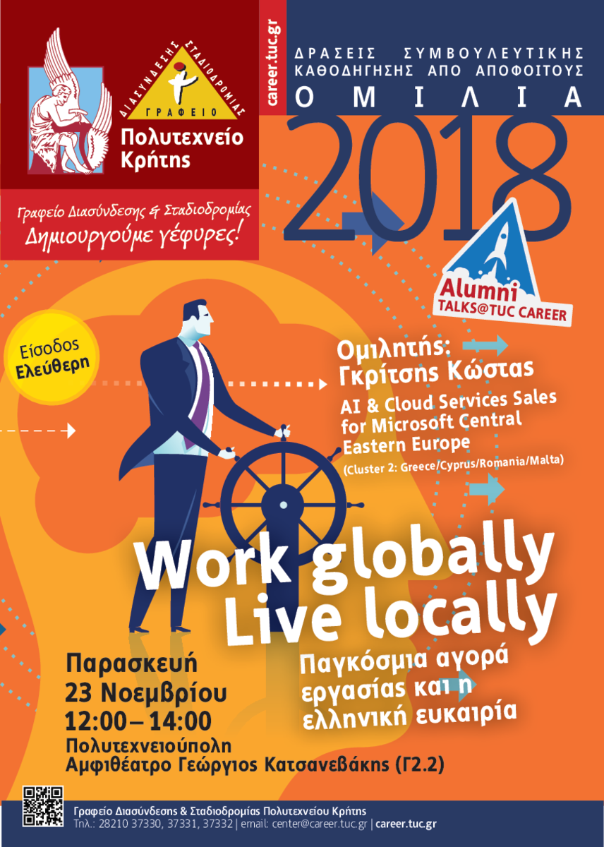 Τίτλος Ομιλίας: Work globally, live locally. Πολυεθνικό περιβάλλον εργασίας, παγκόσμια αγορά εργασίας και η ελληνική ευκαιρία (;).