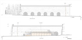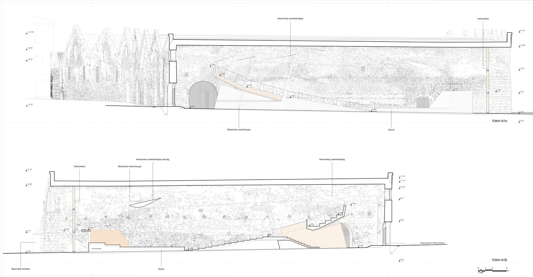 - Η δεύτερη ενότητα περιλαμβάνει τα νεώρια Ν6 και Ν7. Το νεώριο Ν7, τελευταίο σε σχέση με τους χώρους κίνησης, αλλά τελευταίο και στην κατασκευή του, είναι σχεδόν αποκλεισμένο ανάμεσα σε δύο παχείς τοίχους, είναι κατάλληλο να φιλοξενήσει μια ξεχωριστή χρήση, έναν χώρο ομιλιών και σκηνικών τεχνών 200 ατόμων, καθώς επικοινωνεί με τα υπόλοιπα νεώρια μόνο με μία τοξωτή δίοδο στον νότο και μικρότερο άνοιγμα στην βορεινή απόληξή του, επομένως, σε αυτό μπορούν να αναπτυχθούν κατασκευές που δεν θα επηρεάζουν την ενιαία θεώρηση των χώρων με τα τοξωτά ανοίγματα επικοινωνίας. Με καθίσματα υπό κλίση με την προσθήκη ελαφράς κατασκευής, ώστε να εξασφαλιστούν καλές συνθήκες συνθήκες θέασης και ακρόασης, με ανεξάρτητη είσοδο, είτε από το Ν6 είτε από το Ν5.