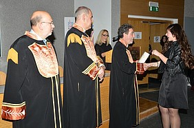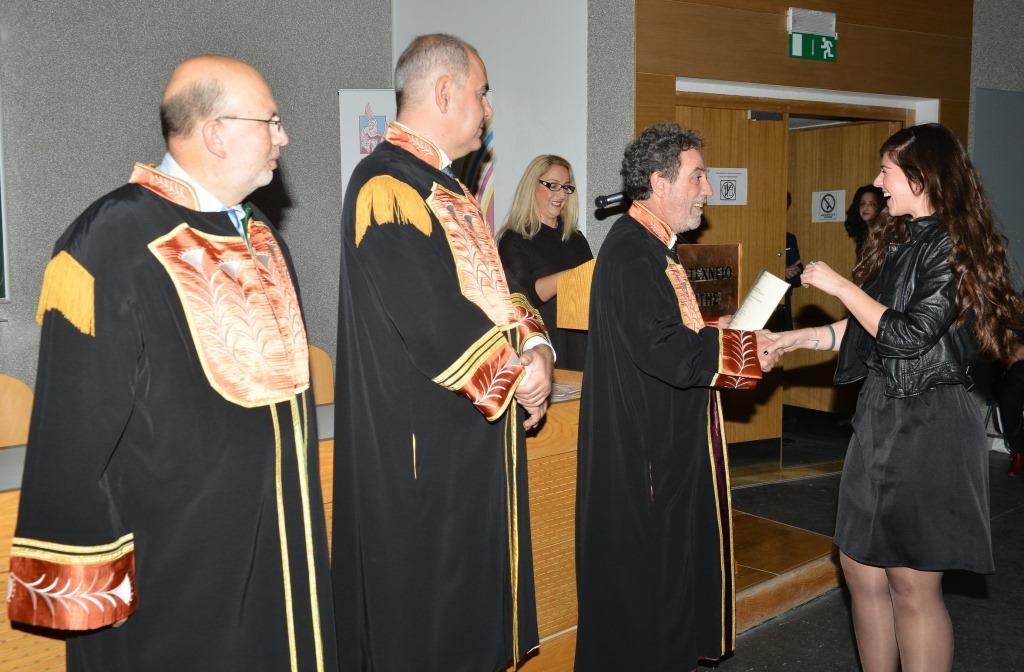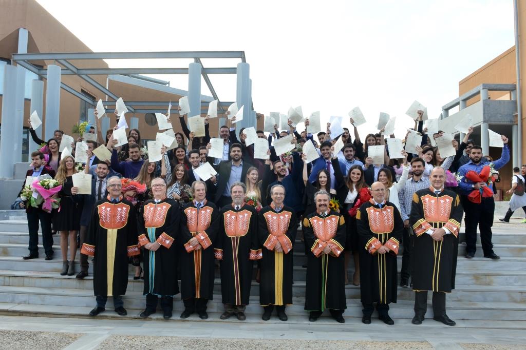 Ο Πρύτανης του Πολυτεχνείου Κρήτης Καθηγητής Βασίλειος Διγαλάκης στην ομιλία του προς τους νέους αποφοίτους μίλησε για την προαγωγή της αριστείας στο Πολυτεχνείο Κρήτης μέσω στοχευμένων δράσεων και για την δική τους πολύτιμη συμβολή σε αυτή, κατά τη διάρκεια των σπουδών τους. Τόνισε την ανάγκη για μελλοντική συμμετοχή τους στην προβολή του Ιδρύματος διατηρώντας την επικοινωνία και τη συνεργασία με το Πολυτεχνείο Κρήτης ως απόφοιτοι. Έγινε αναφορά στην ανάδειξη του Πολυτεχνείου Κρήτης ως ένα από τα καλύτερα Πανεπιστήμια της Ελλάδας βάσει της εξωτερικής αξιολόγησης του 2016, στην ποιότητα των ακαδημαϊκών προγραμμάτων και της έρευνας που διεξάγεται και μπορεί να συγκριθεί με αντίστοιχα Ιδρύματα της Ευρώπης και της Β. Αμερικής, καθώς και στις συνεχείς διακρίσεις τόσο των μελών της ακαδημαϊκής κοινότητας, όσο και των επιτυχιών των αποφοίτων του σε διεθνές επίπεδο. Επίσης, ο Πρύτανης αναφέρθηκε στους στόχους της παρούσας Πρυτανείας όσον αφορά την εξωστρέφεια και την καινοτομία, ανακοινώνοντας παράλληλα ότι το Πολυτεχνείο Κρήτης, μαζί με άλλα έξι Ελληνικά Πανεπιστήμια, είναι από τα Ιδρυτικά μέλη του Πανεπιστημιακού fund το οποίο πρόσφατα εγκρίθηκε από το European Investment Fund. Τέλος, ο Πρύτανης παρότρυνε τους νέους απόφοιτους να επιλέξουν το επαγγελματικό πεδίο που τους εμπνέει και τους προξενεί ενθουσιασμό, ώστε να προσφέρουν ένα καλύτερο μέλλον στην κοινωνίας μας.