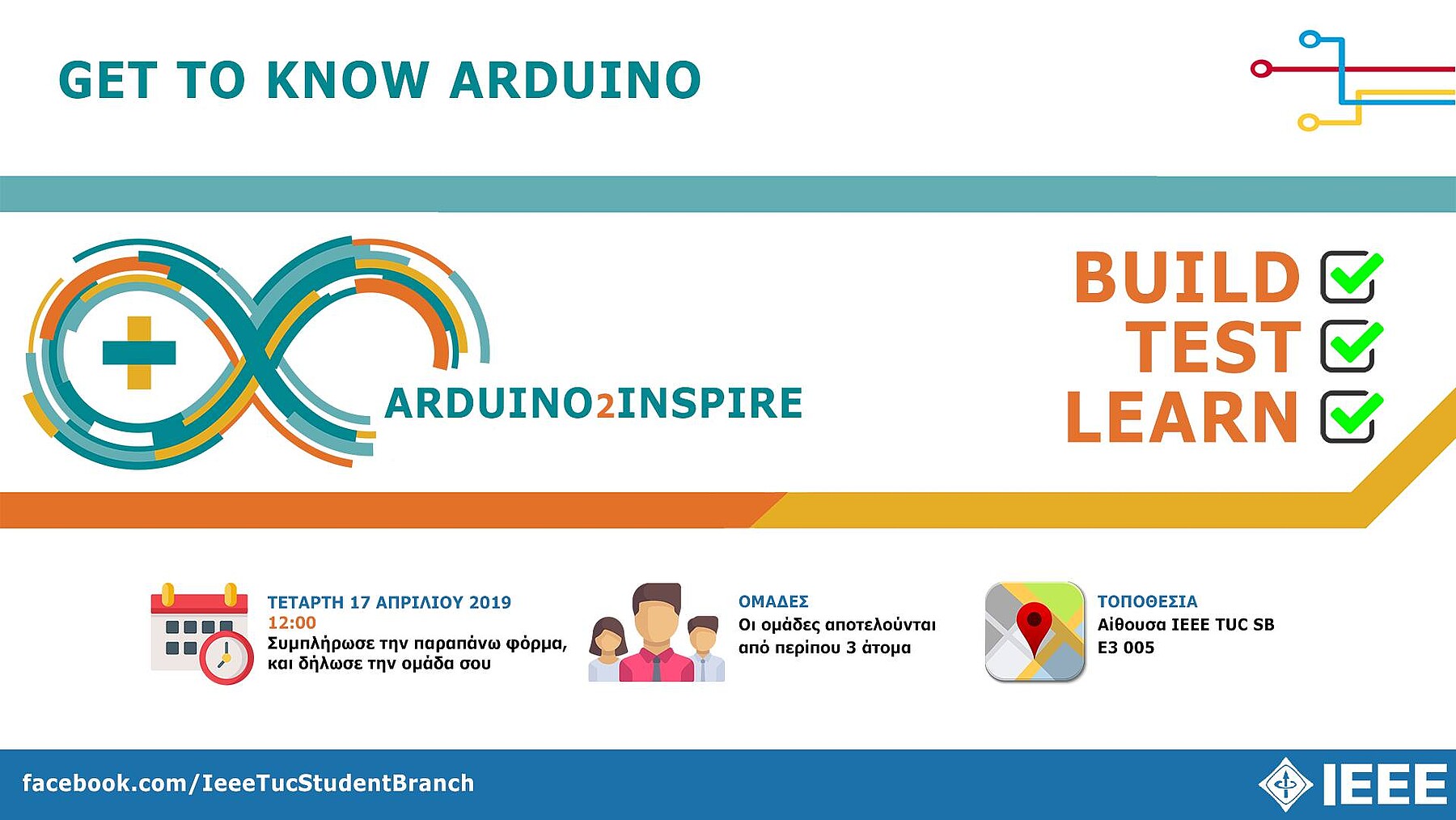 Η IEEE TUC Student Branch διοργανώνει ένα beginner friendly Arduino Workshop για όλους τους φοιτητές που κρύβουν έναν inventor μέσα τους! Το workshop θα πραγματοποιηθεί την Τετάρτη 17/4/2019 και ώρα 12:00 στο γραφείο του Branch και θα αποτελείται από ομάδες των 3 ατόμων.