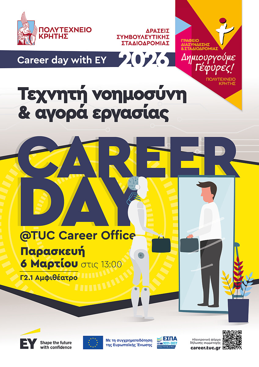 Πληροφορίες: Γραφείο Διασύνδεσης & Σταδιοδρομίας, τηλ. 2821037331, email: career-center@tuc.gr