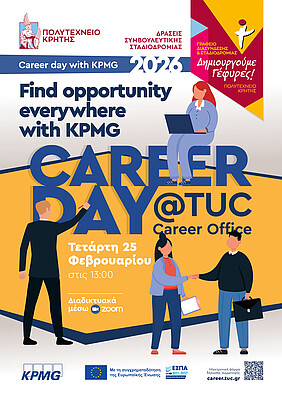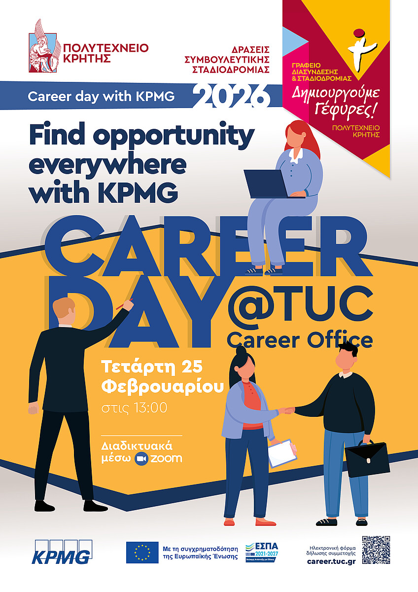To Γραφείο Διασύνδεσης και Σταδιοδρομίας του Πολυτεχνείου Κρήτης, στο πλαίσιο της δράσης #CareerDay@TUC Career Office, διοργανώνει