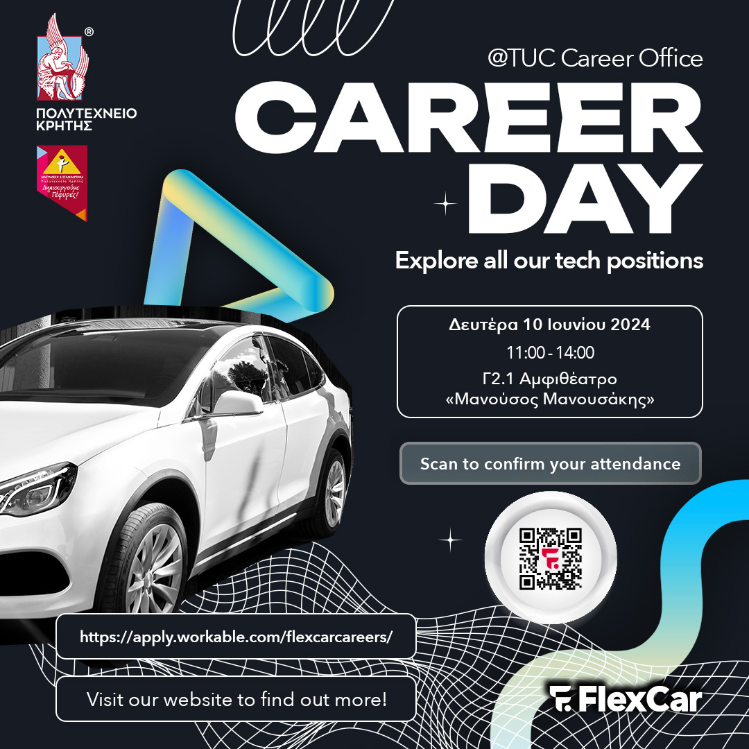To Γραφείο Διασύνδεσης και Σταδιοδρομίας του Πολυτεχνείου Κρήτης διοργανώνει Career Day με την εταιρεία FlexCar στο πλαίσιο της δράσης # Career Day@TUC Career Office,