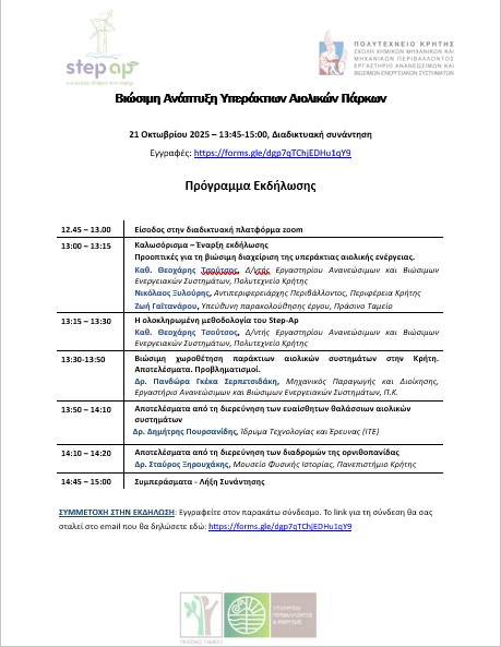 η οποία θα διεξαχθεί την Τρίτη 21 Οκτωβρίου 2025, 13:00-15:00, διαδικτυακά, στο πλαίσιο του έργου STEP-AP.