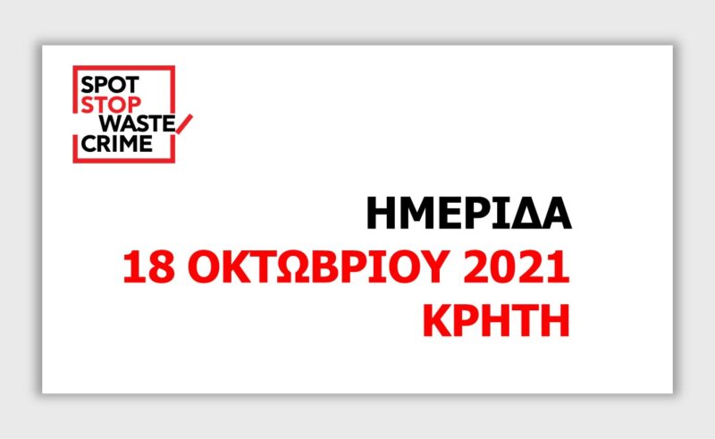 Στο πλαίσιο του έργου "Stop Waste Crime - LIFE Prowhibit" που συντονίζεται από το Υπουργείο Περιβάλλοντος και Ενέργειας (ΥΠΕΝ), θα πραγματοποιηθεί διαδικτυακή ημερίδα με θέμα «Περιβαλλοντικό Έγκλημα Αποβλήτων: Δράσεις και Καίρια Ζητήματα στην Κρήτη» τη Δευτέρα 18 Οκτωβρίου 2021 στις 10:00πμ. Στο πλαίσιο της ημερίδας θα πραγματοποιηθούν ομιλίες εκπροσώπων απο το ΥΠΕΝ, την Περιφέρεια Κρήτης, την Αποκεντρωμένη Διοίκηση Κρήτης, το Πράσινο Ταμείο, τη ΔΕΔΙΣΑ και άλλους συμμετέχοντες φορείς.