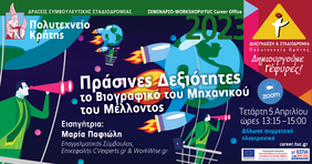 Περισσότερες πληροφορίες στο Facebook Event και στο Γραφείο Διασύνδεσης και Σταδιοδρομίας (τηλέφωνα: 28210-37331, 28210-37332, email: career-center<στο>tuc.gr).