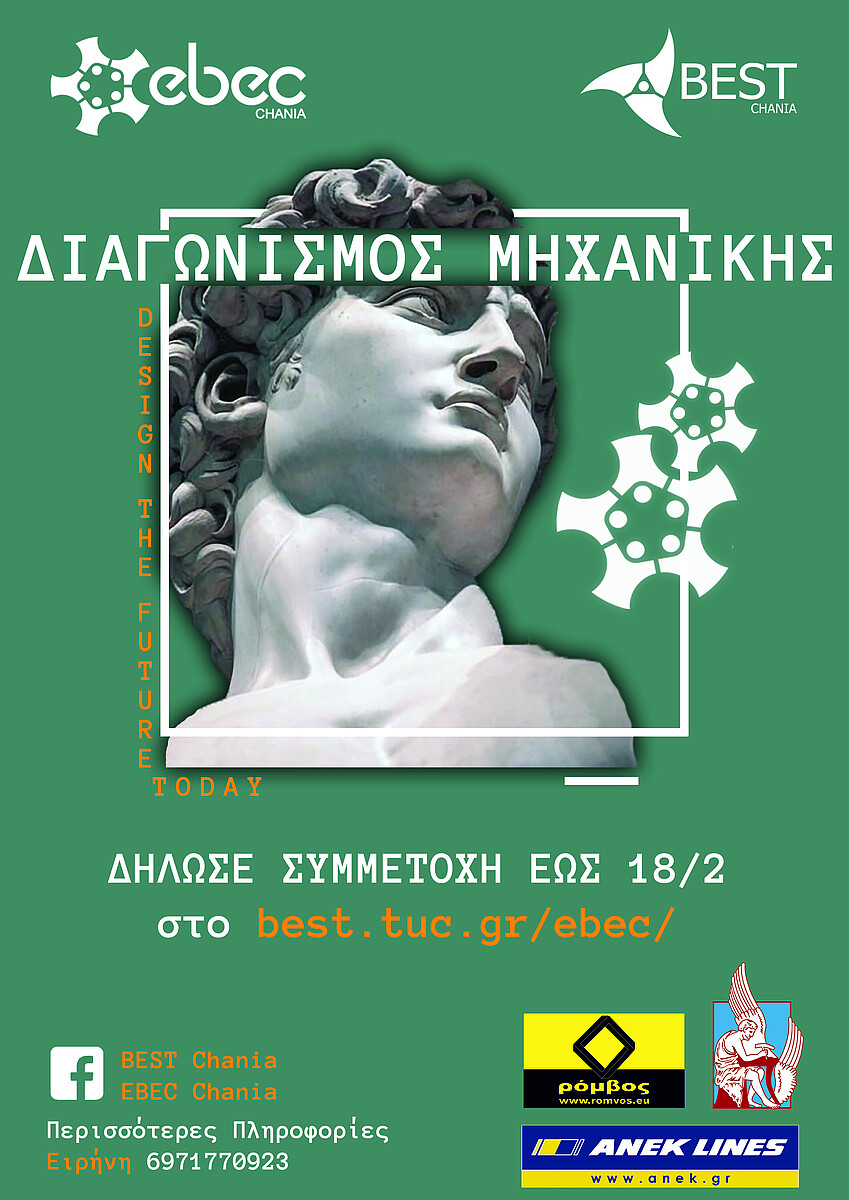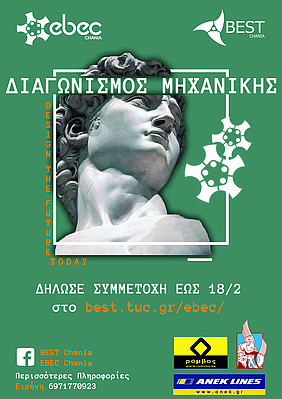 Για μία ακόμη χρονιά o φοιτητικός σύλλογος BEST Chania του Πολυτεχνείου Κρήτης διοργανώνει τον Τοπικό Διαγωνισμό Μηχανικής (EBEC). Ο διαγωνισμός θα πραγματοποιηθεί στις 2 και 3 Μαρτίου 2019 στο Κτήριο Επιστημών, στην Πολυτεχνειούπολη, Ακρωτηρίου.
