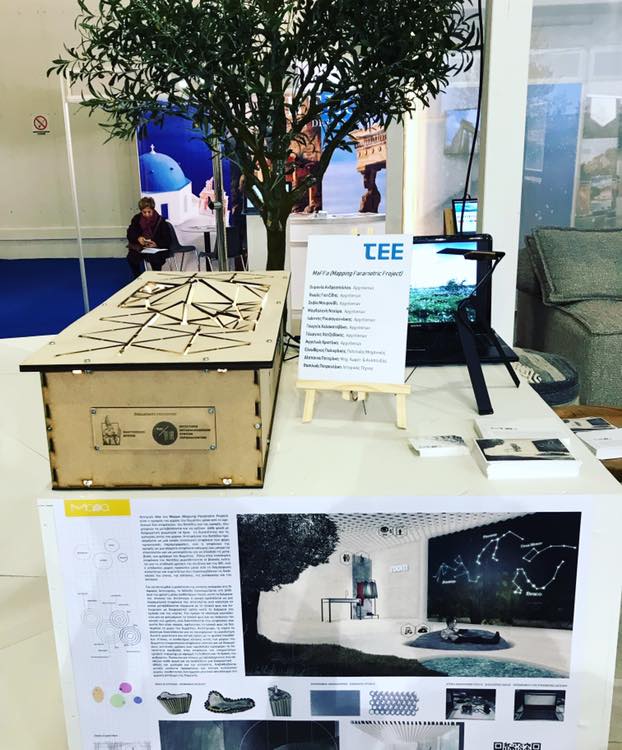 Το έργο Mapping Parametric Project διακρίθηκε στην ανοιχτή πρόσκληση υποβολής προτάσεων για τον σχεδιασμό και την κατασκευή πρότυπου τμήματος DIGI «έξυπνου» ξενοδοχείου που διοργάνωσε το Τεχνικό Επιμελητήριο Ελλάδας σε συνεργασία με το Ελληνικό Τμήμα της UIA και το Διεθνές Πρόγραμμα Εργασίας «Αρχιτεκτονική & Ανανεώσιμες Πηγές Ενέργειας UIA–ARES WP Intl.», στο πλαίσιο της 5ης Διεθνούς Έκθεσης Τουρισμού «Athens International Tourism Expo».