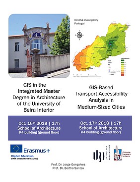 Την Τρίτη 16 και την Τετάρτη 17 Οκτωβρίου και ώρα 17:00, στη Σχολής Αρχιτεκτόνων Μηχανικών (κτίριο Κ4, ισόγειο) θα πραγματοποιηθούν διαλέξεις από τους καθηγητές του Τμήματος Civil Engineering and Architecture του University of Beira Interior, Jorge Gonçalves και Bertha Santos με θέμα την εφαρμογή των Γεωγραφικών Συστημάτων Πληροφοριών στην Αρχιτεκτονική και την Πολεοδομία. Οι διαλέξεις πραγματοποιούνται στο πλαίσιο του προγράμματος Erasmus +,