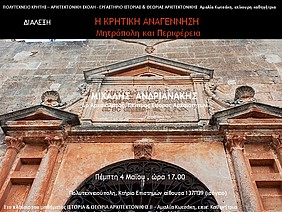Στο πλαίσιο του μαθήματος ΙΣΤΟΡΙΑ & ΘΕΩΡΙΑ ΑΡΧΙΤΕΚΤΟΝΙΚΗΣ 2 με διδάσκουσα την επίκουρη καθηγήτρια Αμαλία Κωτσάκη, θα πραγματοποιηθεί διάλεξη του Δρ. Μιχάλη Ανδριανάκη Αρχαιολόγου, Επίτιμου Εφόρου Αρχαιοτήτων, με θέμα «Η Κρητικής Αναγέννηση-Μητρόπολη και Περιφέρεια».