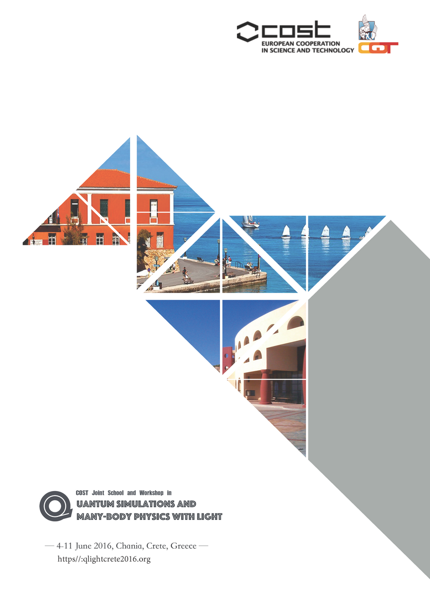Η Ερευνητική Ομάδα Κβαντικής Οπτικής και Κβαντικής Πληροφορίας του Επικ. Καθ. της Σχολής Ηλεκτρονικών Μηχανικών & Μηχανικών Υπολογιστών Δ. Γ. Αγγελάκη, σε συνεργασία με ερευνητικές ομάδες από τα Πανεπιστήμια ETH Ζυρίχης, Diderot Παρισιου, ICFO Βαρκέλωνης, TU Βιέννης, διοργανώνουν το Διεθνές Συνέδριο και Σχολείο "Quantum Simulations and Many-Body Physics with Light", από 4 έως 11 Ιουνίου, στην Ορθόδοξη Ακαδημία Κρήτης στο Κολυμπάρι.