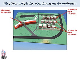 Η Γ' φάση της Φοιτητικής Εστίας θα δημοπρατηθεί τη στιγμή που ήδη κατασκευάζεται η Β' φάση με πόρους του ΠΔΕ. Όταν ολοκληρωθούν οι Β' και Γ' φάσεις, η Φοιτητική Εστία θα διαθέτει συνολικά 260 διαμερίσματα και θα λυθεί οριστικά το πρόβλημα της στέγασης των ασθενέστερων οικονομικά φοιτητών. Πρόκειται για ένα από τα σημαντικότερα θέματα που η παρούσα Διοίκηση κλήθηκε να αντιμετωπίσει μεσούσης μιας πρωτοφανούς οικονομικής κρίσης, την ίδια στιγμή που ειδικά στα Χανιά το πρόβλημα της Φοιτητικής Στέγης είναι ιδιαίτερα οξύ.