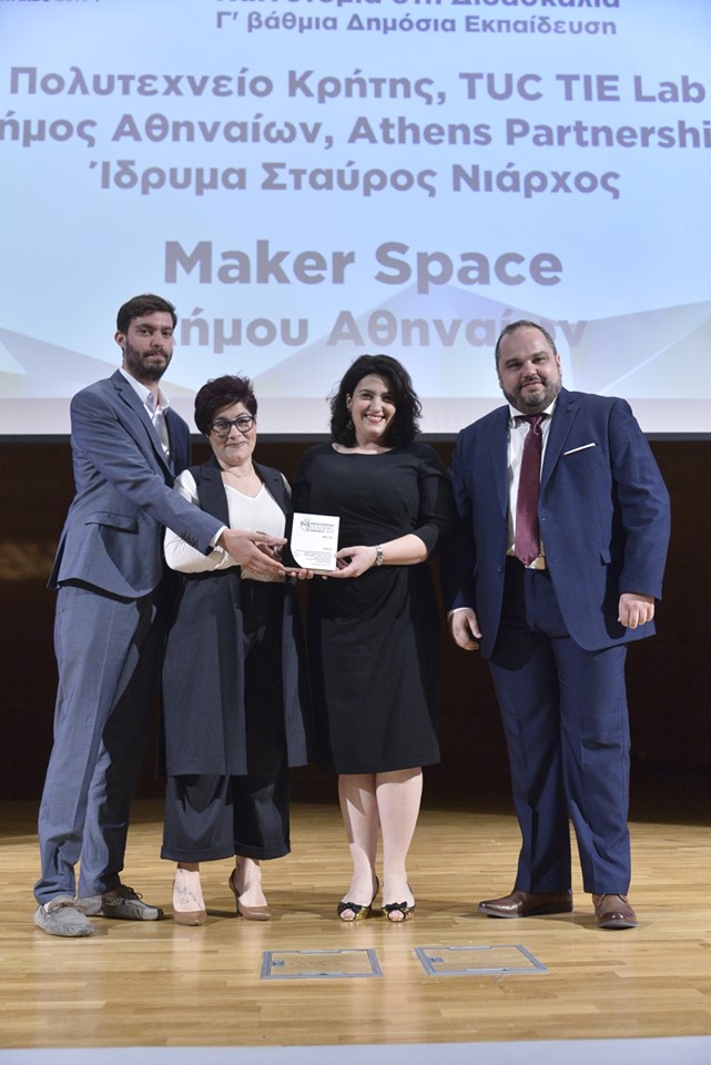 Τα Education Leaders Awards βράβευσαν το Kαινοτόμο εργαστήριο Maker Space του δήμου Αθηναίων με το GOLD βραβείο στην κατηγορία «Καινοτομία στη Διδασκαλία», για τα καινοτόμα προγράμματά του στο πεδίο της εκπαίδευσης και της δια βίου μάθησης.