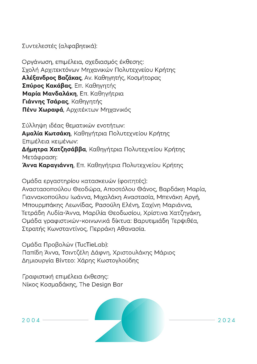 Οργάνωση, επιμέλεια, σχεδιασμός έκθεσης: Σχολή Αρχιτεκτόνων Μηχανικών Πολυτεχνείου Κρήτης