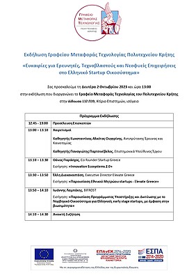 «Ευκαιρίες για Ερευνητές, Τεχνοβλαστούς και Νεοφυείς Επιχειρήσεις στο Ελληνικό Startup Οικοσύστημα»