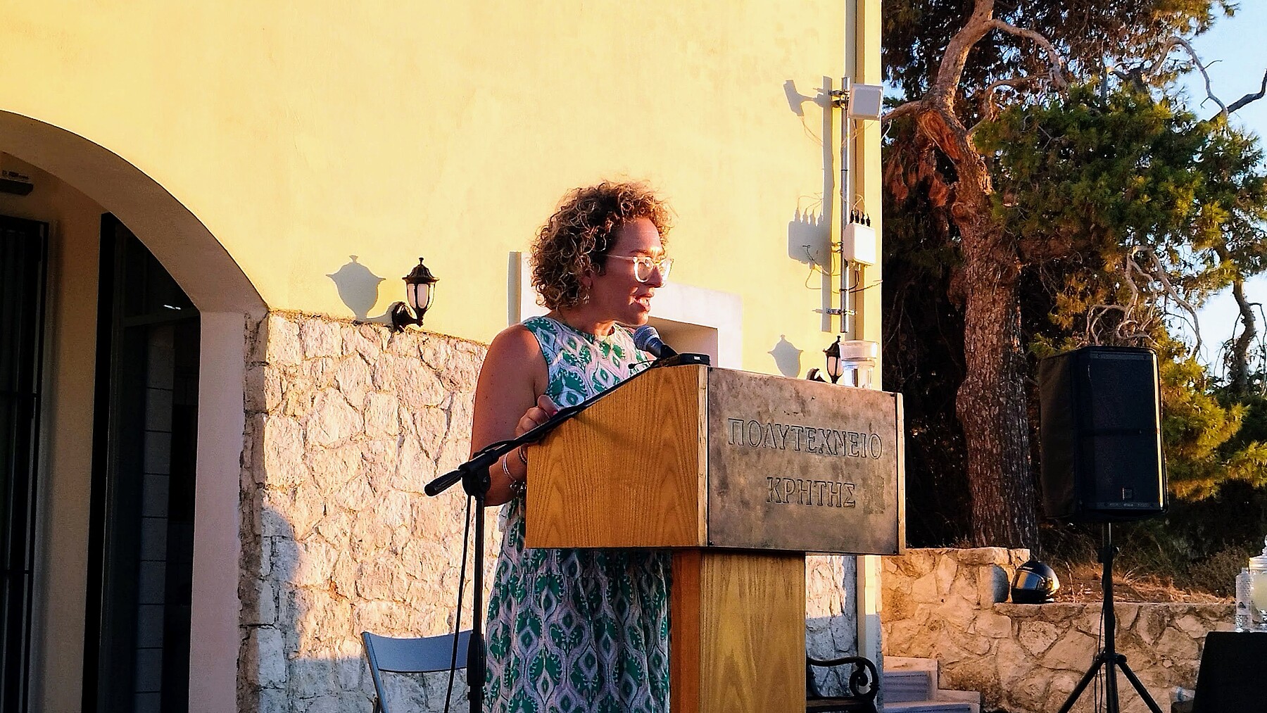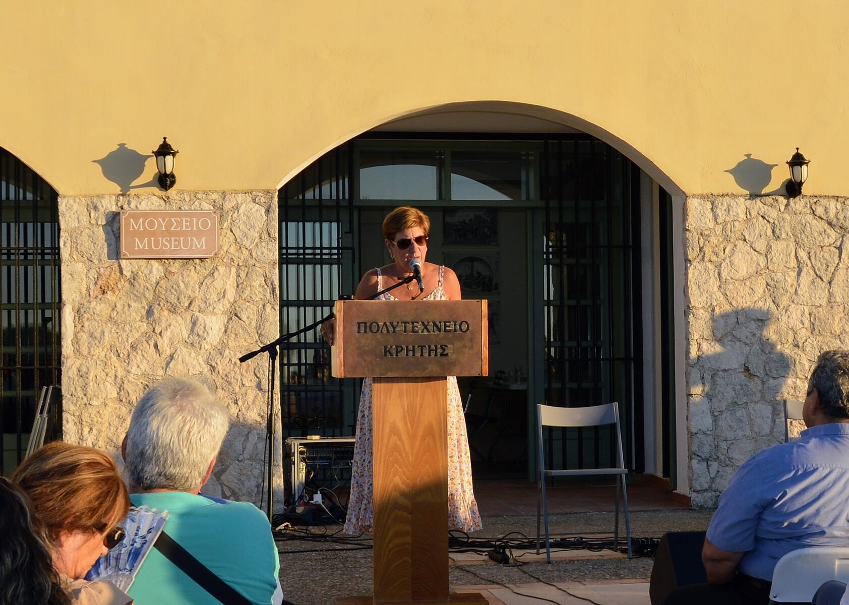 Κατά τη διάρκεια του χαιρετισμού της η κ. Κουναλάκη κάλεσε στο βήμα την Πρόεδρο του Παγκρητίου Κληροδοτήματος κ. Άννα Γιαννούλια, η οποία καλωσόρισε με τη σειρά της τους παρευρισκόμενους και επιβεβαίωσε την πρόθεση προσφοράς και συνεργασίας του Παγκρητίου Κληροδοτήματος με το Πολυτεχνείο Κρήτης.