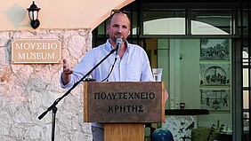 Μετά την πολύ ενδιαφέρουσα ομιλία, τον λόγο έλαβε ο π. Εμμανουήλ Μπιτζανάκης, εφημέριος της Ενορίας Προφήτη Ηλία και εκπρόσωπος του Σεβασμιωτάτου Μητροπολίτη Κυδωνίας και Αποκορώνου, ο οποίος μίλησε με πολύ θερμά λόγια για το Πολυτεχνείο Κρήτης και ειδικότερα για το Πάρκο Διάσωσης Χλωρίδας και Πανίδας.
