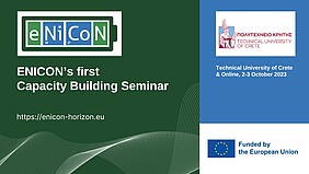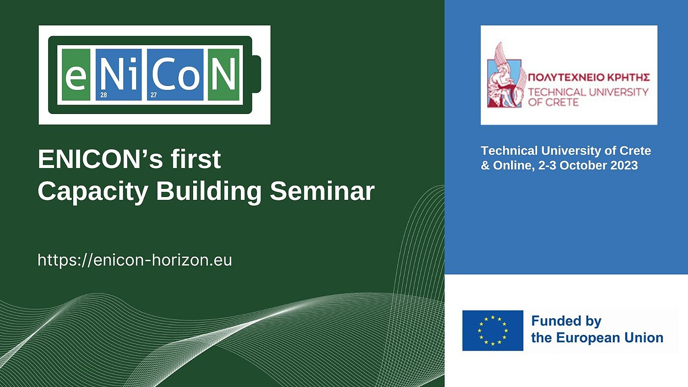 Στα πλαίσια του ευρωπαϊκού προγράμματος Sustainable processing of Europe’s low grade sulphidic and lateritic Ni/Co ores and tailings into battery grade metals (ENICON) (https://enicon-horizon.eu), το Εργαστήριο Διαχείρισης Μεταλλευτικών και Μεταλλουργικών Αποβλήτων και Αποκατάστασης Εδαφών της Σχολής Μηχανικών Ορυκτών Πόρων του Πολυτεχνείου Κρήτης, διοργανώνει το 1st Capacity Building Seminar με υβριδική μορφή στις 2 & 3 Οκτωβρίου 2023.