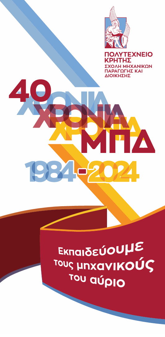 Η Σχολή Μηχανικών Παραγωγής και Διοίκησης (ΜΠΔ) του Πολυτεχνείου Κρήτης συμπληρώνει 40 χρόνια λειτουργίας. Η Σχολή ιδρύθηκε ως Τμήμα το 1983 και δέχθηκε για πρώτη φορά φοιτητές το 1984, ενώ από το 2013 λειτουργεί με την παρούσα οργανωτική της δομή ως μονοτμηματική Σχολή.