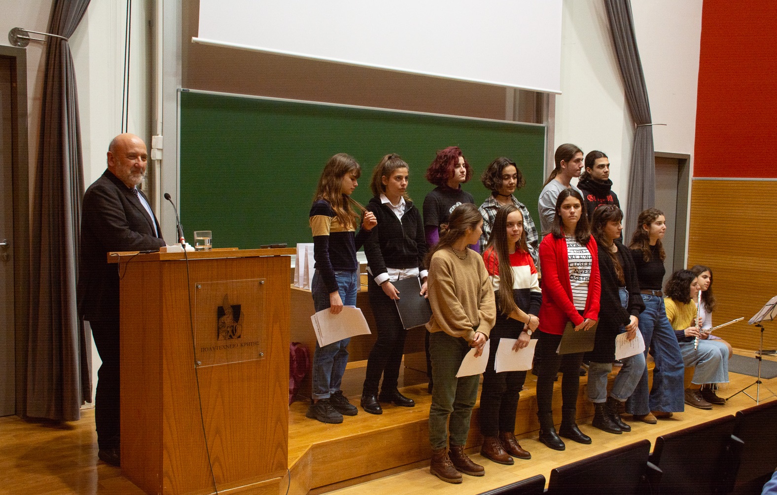 Την εκδήλωση "άνοιξε" η χορωδία του Μουσικού Σχολείου Χανίων, με τη συμμετοχή 14 μαθητών και μαθητριών, που ερμήνευσαν δημοφιλή ελληνικά και ξένα τραγούδια, μεταδίδοντας την ιδιαίτερη χαρά της μουσικής στους παρευρισκόμενους. Τη χορωδία συνόδευσαν, οι Καθηγητές του Μουσικού Σχολείου κα Γεωργία Νικολουδάκη και κος Ευάγγελος Βαϊγκούσης.